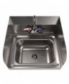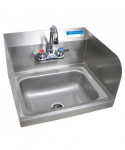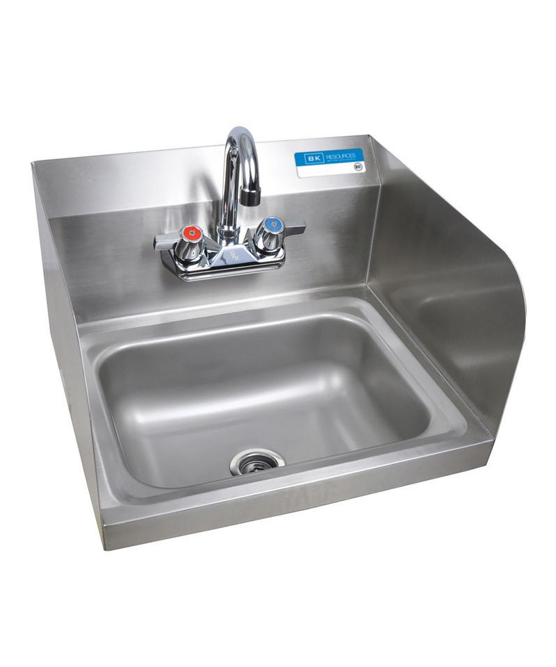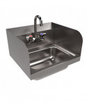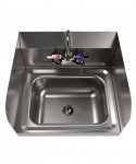 This wall-mounted hand sink, featuring a 14" l x 10" w bowl, is crafted from durable 306 stainless steel, ensuring longevity and hygiene. Side splashes on both the left and right sides enhance functionality. The sink includes 4" on-center splash mount faucet holes, accompanied by a BKD-3G-G faucet for efficient water access. With a 1.88" drain opening, the sink comes complete with a basket drain and mounting bracket for added convenience. It provides a reliable and practical solution for hand hygiene in various settings.