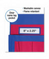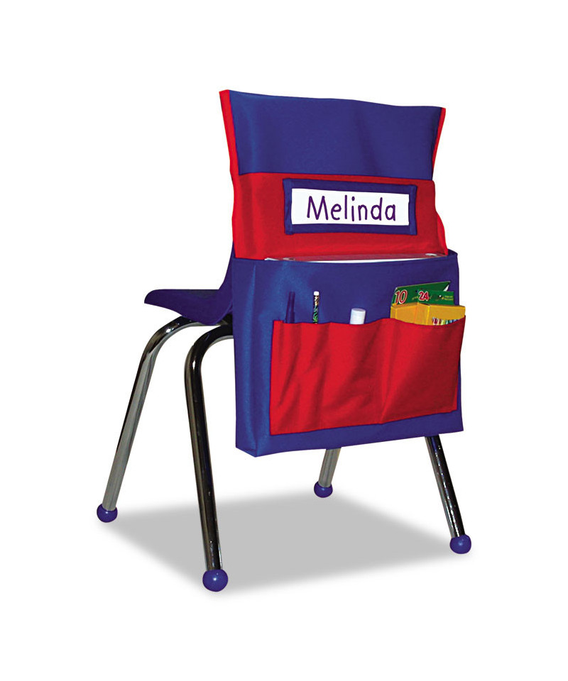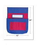 Keep young students' supplies organized and within easy reach! Heavy-duty washable canvas with PVC coating for added durability. Features six storage pockets and a name tag holder. Fits seat backs up to 30" around.