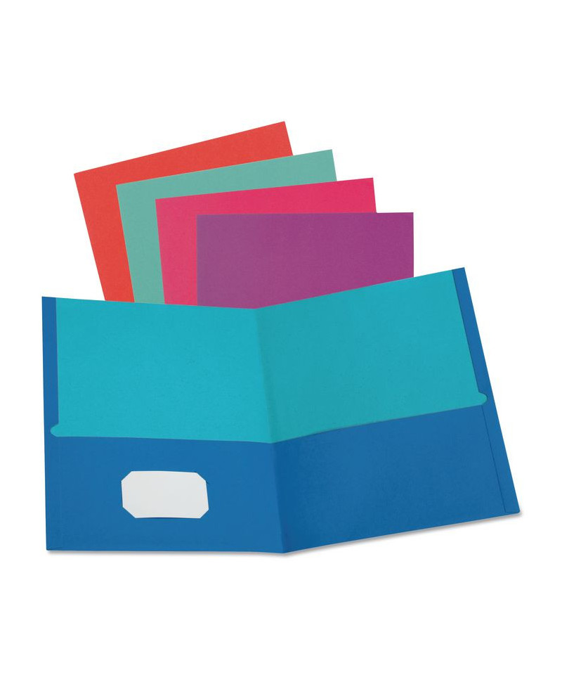 Add a bit of excitement to your presentation with a different fun color inside and out. Twin pockets are perfect for holding loose papers or your entire project while durable embossed cover offers a protective professional touch. Handy die-cut business card slot. Holds up to 100 sheets (50 per pocket).