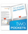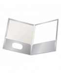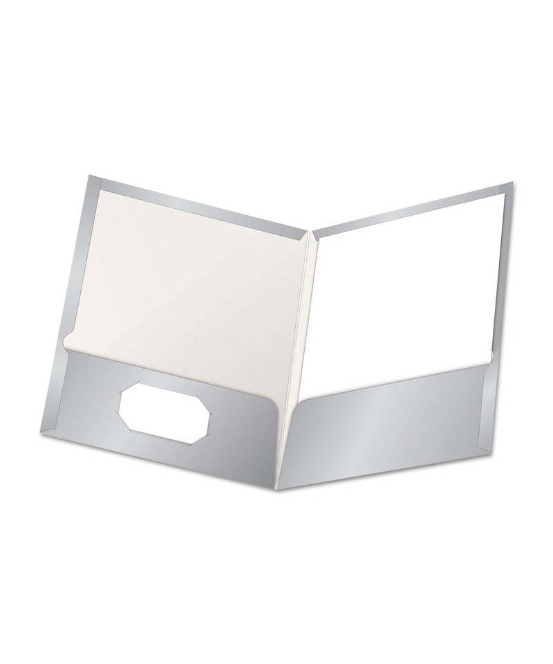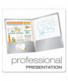 Bright, laminated high-gloss covers get attention. Die-cut business card holder on inside front cover keeps contact information at hand. For 11 x 8.5 sheets. Holds up to 100 sheets (50 per pocket).