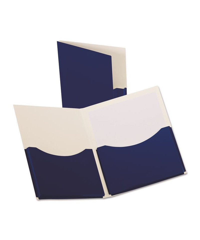 Double Stuff Glossy Laminated Paper Twin-Pocket Folder, Accommodates (200) 11 x 8.5 Sheets, Navy, 20/Box