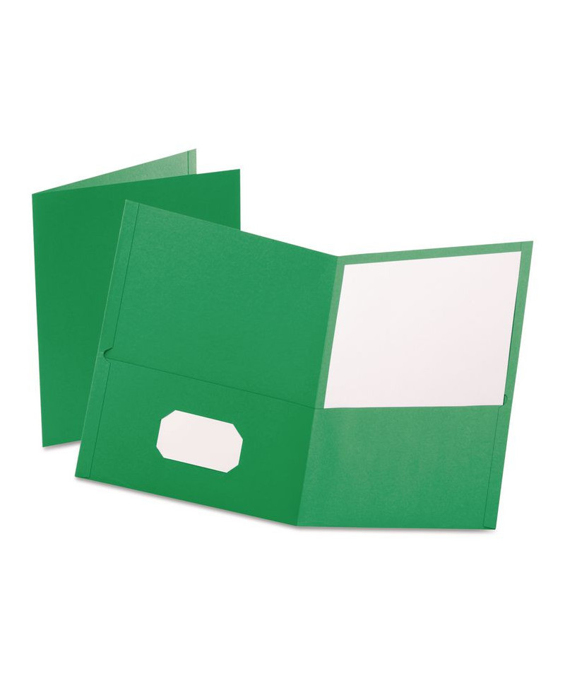 Oxford® Two Pocket Folders provide easy color coded organization for home and school, whether that's in the classroom or a virtual learning environment. The subtle textured paper on the folder reduces marks and smudges so they stay looking new longer. Each folder with pockets holds up to 100 sheets of letter size paper, plus smaller printouts won't fall out of the enclosed pockets. Great for students to organize handouts and teachers to organize student work. Schools can customize these two pocket folders with the die-cut business card holder for new student packets. Traditionally found on school supplies lists, pocket folders have plenty of uses: tax and small business organization, receipt storage and home project tracking.