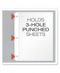 Holds 135 sheets of letter size paper (85 sheets in fasteners, 25 sheets per pocket). Leatherette embossed paper. Die-cut business card holder on inside pocket, Contains post-consumer paper.