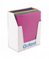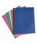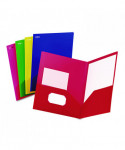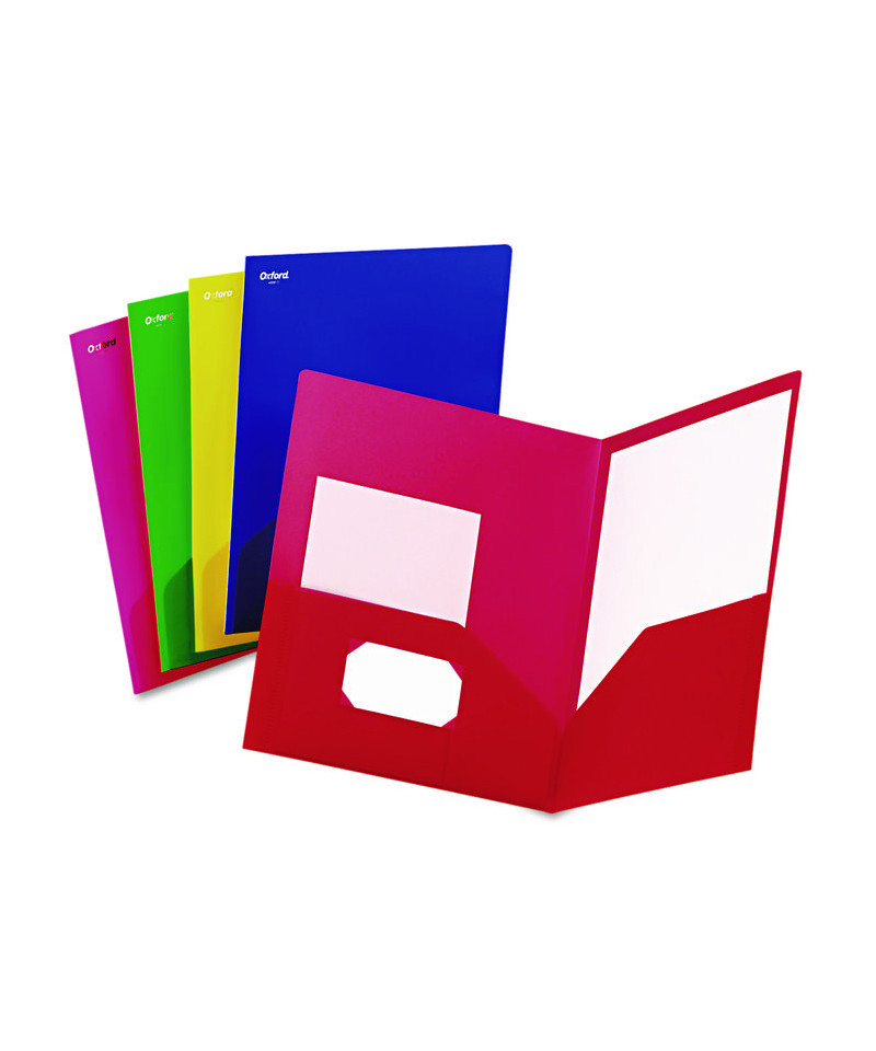 Attractive color assortment for a variety of projects. Durable polypropylene construction resists tears and wear. Holds 100 sheets. Die-cut business card holder.