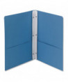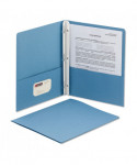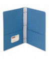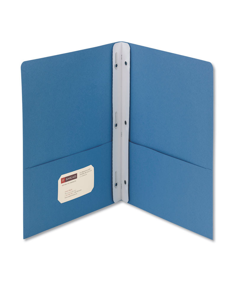 Large pockets safely hold documents for easy transport while keeping the material immediately accessible. Reinforced at the sides, closed at the center, and the left pocket holds a business card. Heavyweight textured stock makes a distinctive impression. White strip attached in the center fold has three fasteners to securely hold 3-hole punched documents. Safely holds up to 80 sheets of 3-hole punched papers. Large pockets hold up to 50 sheets each. Made of heavyweight stock for durability.
