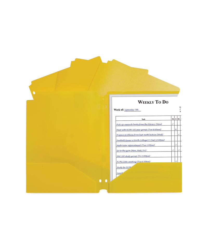 Two-Pocket Heavyweight Poly Portfolio Folder with Three-Hole Punch, Accommodates 11 x 8.5 Sheets, Yellow, 25/Box