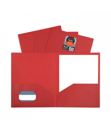 These folders have an embossed leatherette finish. Each folder has three prongs and eyelets for paper storage. Convenient inside pockets provide easy access. The color is printed on durable white tag stock. Colored outsides, inside surface is white.