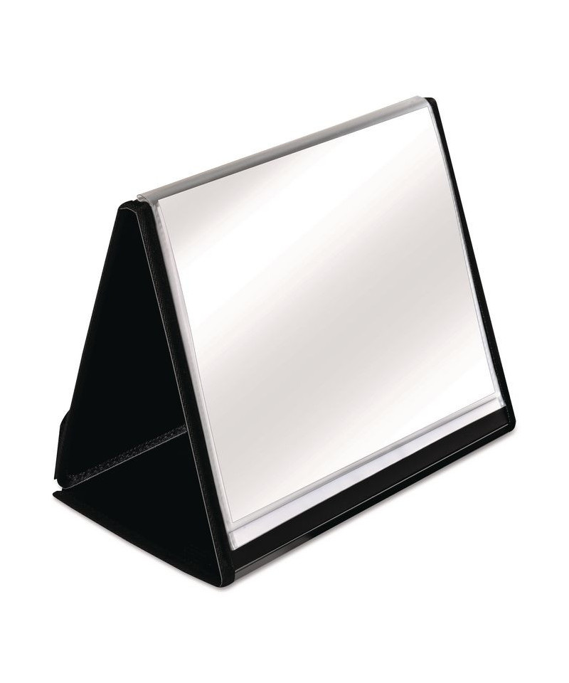Slim, lightweight and ideal for presentations. Display up to 40 sheets. Hook and loop tabs hold book open for display and closed when not in use. Durable poly cover has business card sleeve.