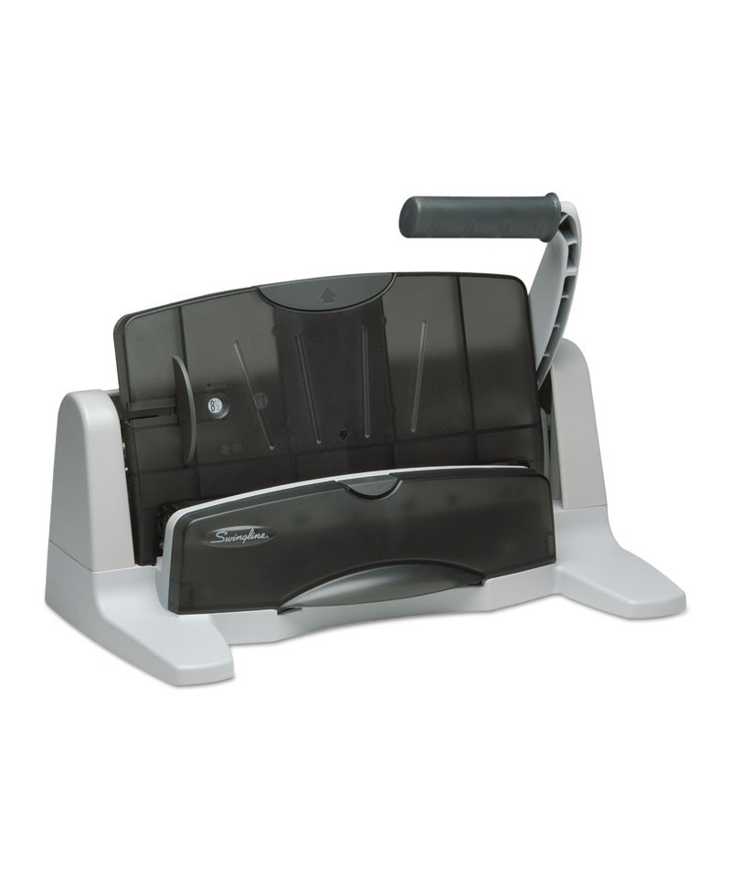 Revolutionary ease-of-use design requires 50% less punching effort than any punch in its class. Also features breakthrough jam-free performance-punch heads and comfortable, unique lever handle are fused into one mechanism, delivering full pin control. Features three punch heads; adjust to hold two to seven (additional heads sold separately). Clear slide-out chip tray for easy clean-up. Durable, high-quality construction.