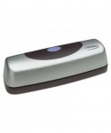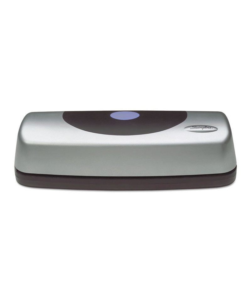 Sleek, personal 3-hole punch is ideal for travel and features seamless automatic operation. Effortless, electric hole punching is achieved using the AC adapter (included) or 6 AA batteries (not included). Delivers clean 3-hole punching through as many as 15 sheets at once. Easily clear jams by hitting the reset button to reverse the punch pins. A hinged chip door keeps work spaces neat and is easy to empty.