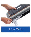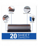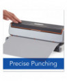 Electric 3-hole punch with efficient paper alignment indicators ensures accurate punching every time. Compact and lightweight, it's easily portable and provides professional looking results. Modern design electric 3-hole punch operates from AC adapter or 6 AA batteries. Quickly punches through as many as 20 sheets with an easy touch of a button. Automatic reverse clears paper jams for trouble free punching.