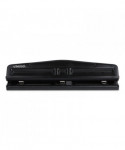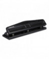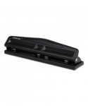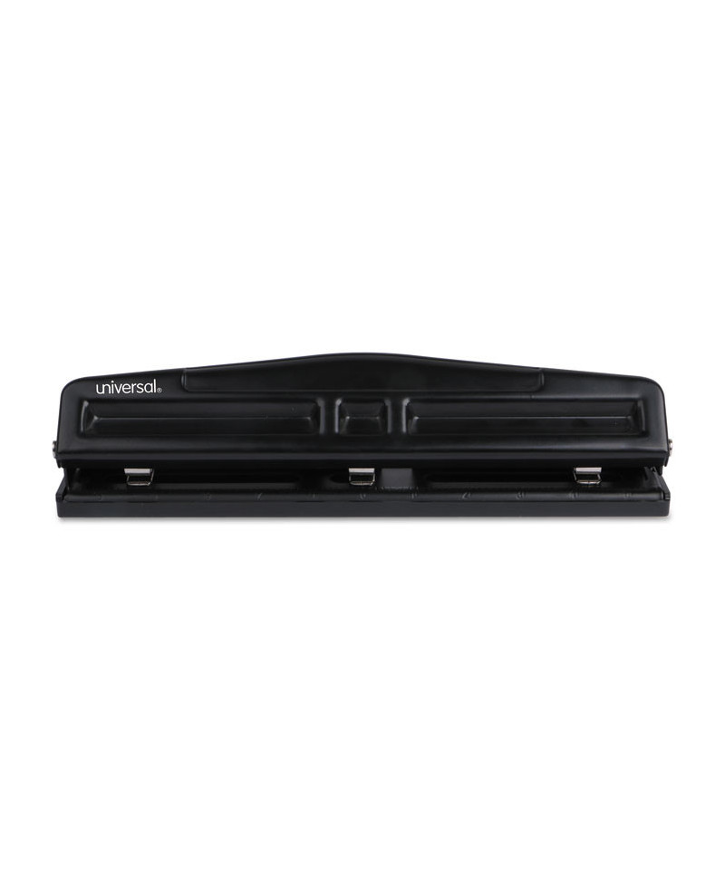 This hole punch punches up to 12 sheets of paper at once, ideal for everyday office tasks. Three punch heads adjust for two- or three-hole punching. Removable chip tray allows for easy cleanup. Durable and sleek plastic/metal design add a professional look to any surface.