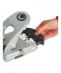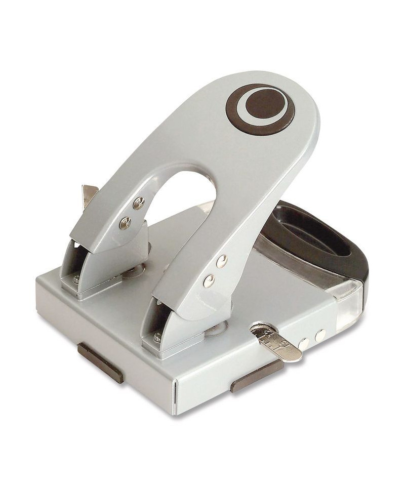 Puncture through up to 50 sheets of paper at one time with this two-hole punch. Featuring a visible window, this tool lets you view chip buildup, so you always know when it's time to empty the contents. Built-in paper guide makes it easy to get accurate punches. This heavy-duty two-hole punch has a padded ergonomic handle for added comfort.