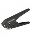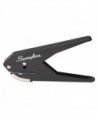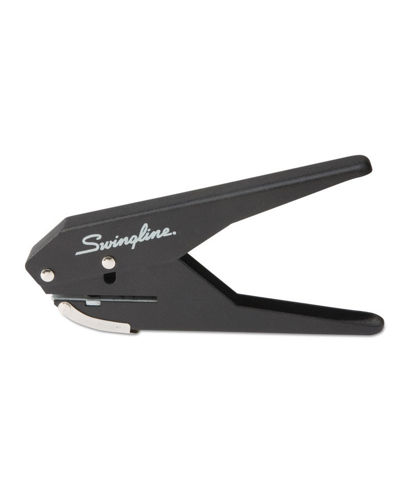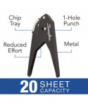 Low force paper punch delivers powerful 1-hole punching, without demanding any more effort from you. A slim handle and unique, plier design make hole punching easier on your hands. In comparison to a traditional punch, it takes significantly less force to punch through as many as 20 sheets. Durable metal construction ensures long-lasting use; 1" maximum throat depth offers hole punch versatility. Built-in chip tray eliminates mess.