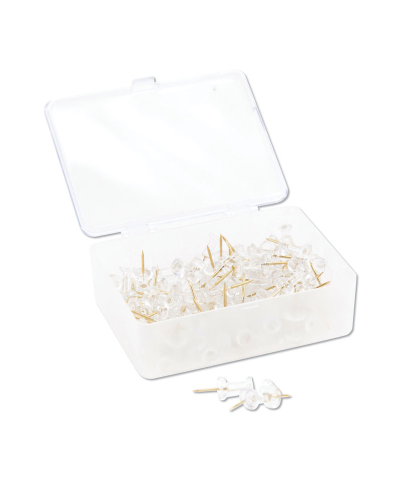 Standard Push Pins, Plastic, Clear, Clear Head/Gold Pin, 0.44", 100/Pack