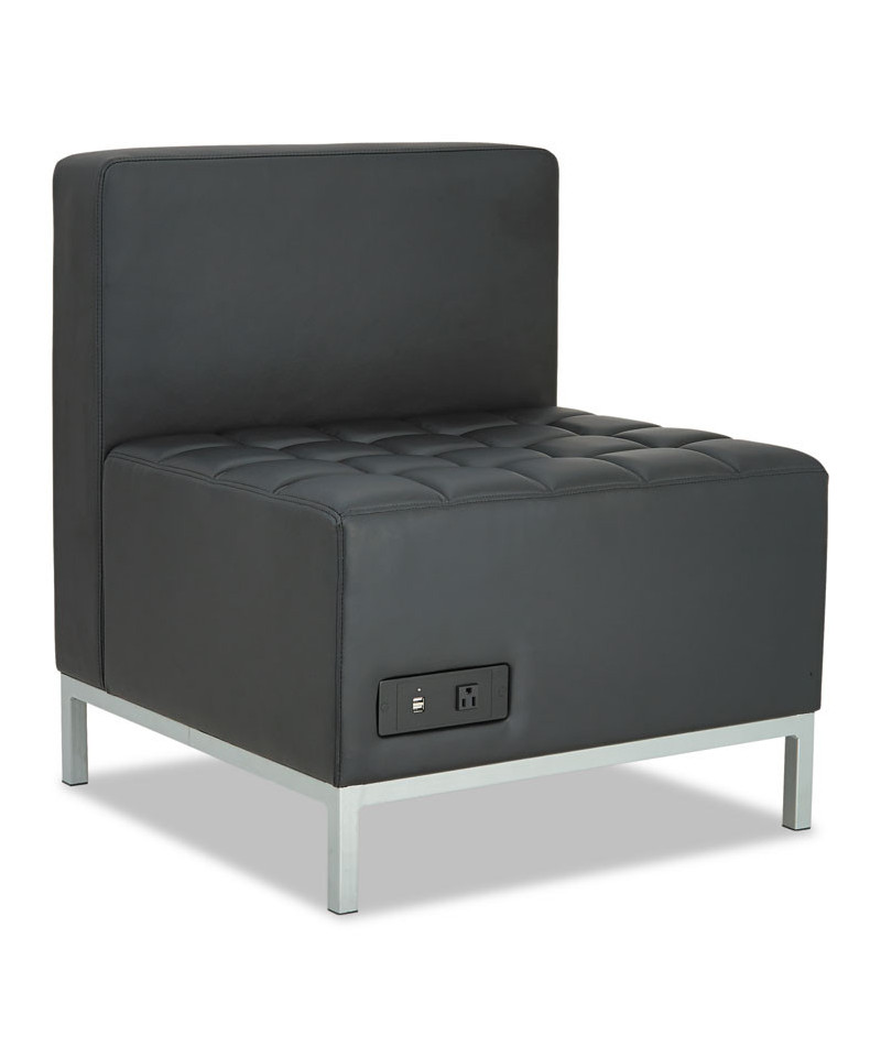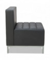 This sectional delivers sleek, contemporary style with modular flexibility to match any reception, lounge or waiting space. Featuring tufted cushions with straight backs and arms, it blends comfort and modern design effortlessly. Pair corner, armless and ottoman components to craft endless layouts. Silver steel frames and legs adds style.