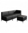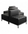 Contemporary geometric reception room sectional set can be configured in endless possibilities. Tufted seat design with straight backs and arms for a modern yet comfortable look. Armless sectional can be configured with corner sectional and ottoman. Silver steel frames and legs adds style.