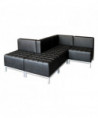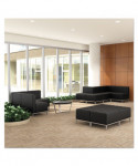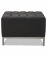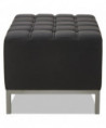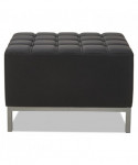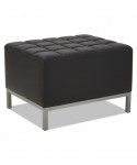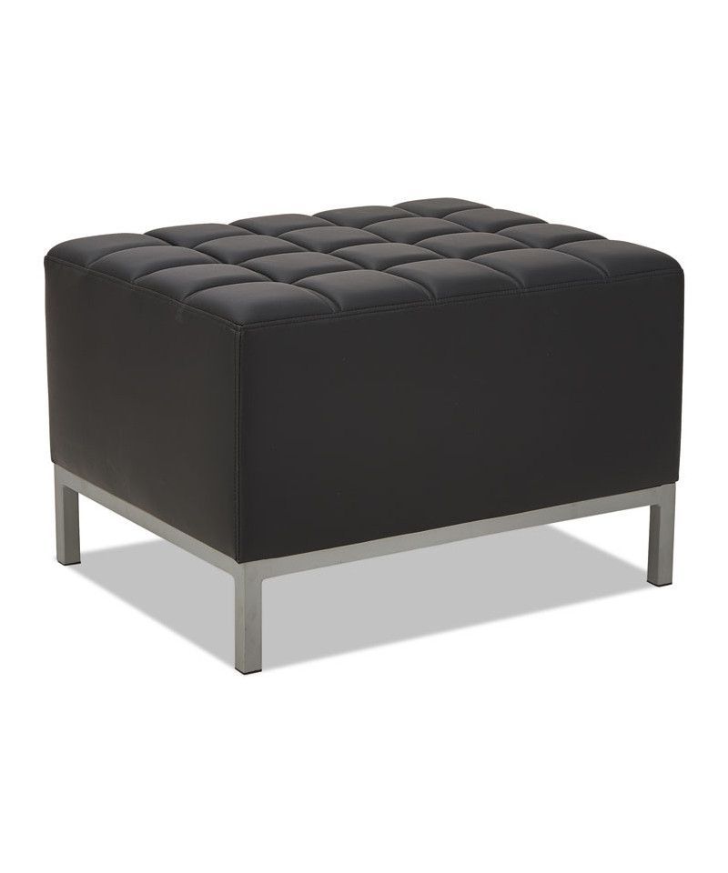 Contemporary geometric reception room sectional set can be configured in endless possibilities. Tufted seat design for a modern yet comfortable look. Ottoman can be configured with corner and armless sectional. Can be placed to create two-sided seating with armless sectional when placed back-to-back. Silver steel frames and legs adds style.