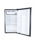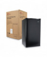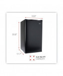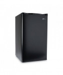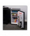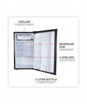Counter-height fridge is ideal for breakrooms, offices, or household use. Lightweight, quiet, easy-to-use, low-electric consumption refrigerator is perfect in any small space. Chiller compartment with door for short-term storage of frozen items. Plenty of storage with three shelves, a two-liter bottle compartment, and beverage can dispenser. Reversible doors can be installed left or right to fit any configuration. Full-range temperature control. Leveling glides to help compensate for uneven floors. Flush back design conceals components and allows a seamless fit in tight spaces.
