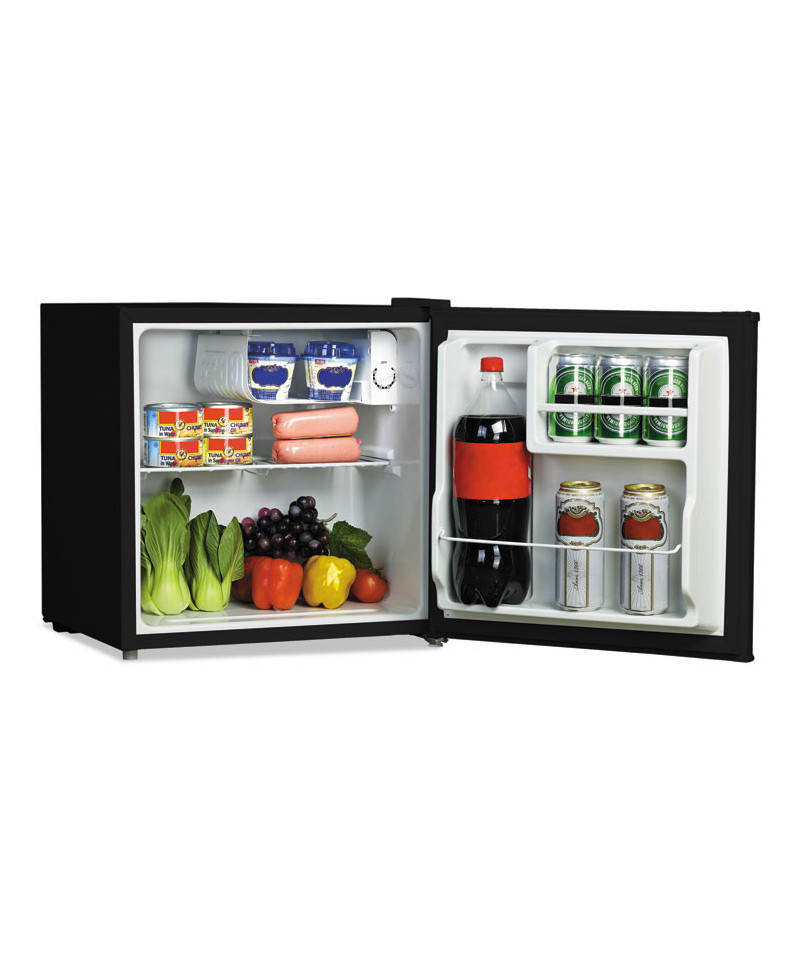 Compact sized mini-fridge is perfect for light-duty or personal use. Lightweight, quiet, easy-to-use, low-electric consumption refrigerator is perfect in any small space. Chiller compartment with door for short-term storage of frozen items. Includes one shelf, two-liter bottle compartment and beverage can holder. Reversible doors can be installed left or right to fit any configuration. Full-range temperature control. Leveling glides to help compensate for uneven floors. Flush back design conceals components and allows a seamless fit in tight spaces.
