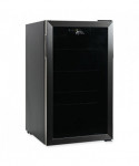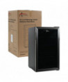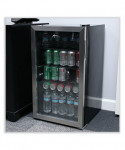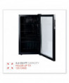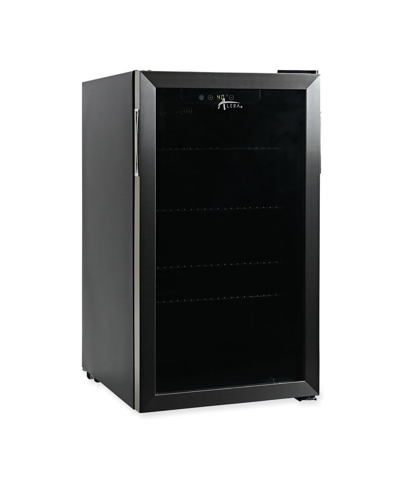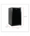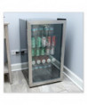 Sleek, stainless steel beverage cooler keeps beverages cool and easily available. Convenient triple layer glass front door is frost-free, to better showcase drink choices. Convenient cooler provides plenty of storage, with three adjustable shelves. Holds up to 120 cans. Reversible doors can be installed left or right to fit any configuration. Comes with full-range temperature control and interior light. Quiet, low-energy consumption refrigerator/cooler is perfect in any space. Leveling glides help compensate for uneven floors. Flush back design conceals components and allows a seamless fit in tight spaces.