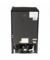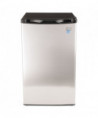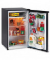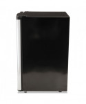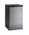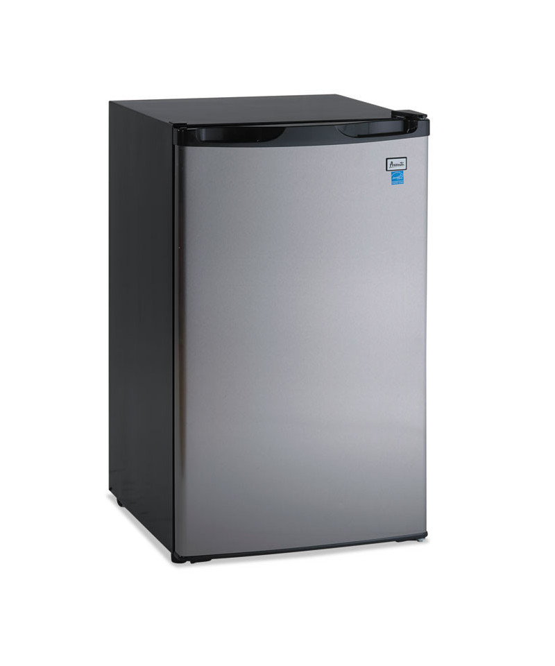 Convenient mini-fridge has adjustable slide-out shelves, so you can arrange the contents just the way you want them. Contains one full-width and two half-width door storage bins. A gallon-jug storage area in the lower door bin is perfect for larger bottles. A full-width chiller compartment is perfect for frozen meals and ice cream. Adjustable thermostat control with a push-button defrost mode. Leveling legs are adjustable, to accommodate odd or uneven flooring and a flat-back design allows for easy placement. An interior light makes it easy to grab what you want, even at night. Convenient reversible door.