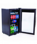 Keep your favorite drinks close by in this compact, 3 cubic feet beverage center fridge with stainless steel frame and double pane tempered glass door from Avanti. The perfect lockable mini fridge for the office, dorm, man cave, she shedt, bar, bedroom, or anywhere you need a little extra refrigerator cooling and storage space. Easily view your drink choices through the glass door. Use the adjustable, removable shelving to arrange drinks for easy access throughout the day. This compact fridge holds 108 12 oz cans and features automatic defrost, so your drinks stay perfectly chilled. Select the right settings at the touch of a button for your items with the electronic display.