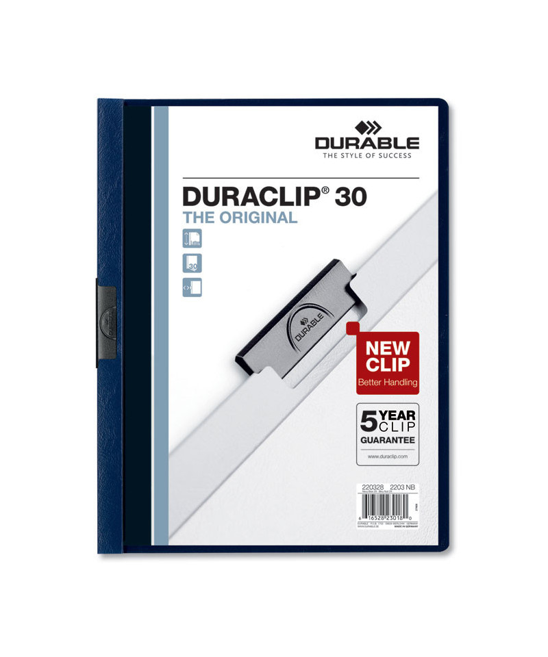 The polished look of DURACLIP® Report Covers immediately grabs attention, setting the stage for stylish and impactful presentations. But it doesn't stop there the punchless design saves you valuable time, and the first-class materials maintain their long-term professional appearance. The folder is made of vinyl with a sleek and refined finish, providing a tactile and visual experience that communicates professionalism. The clear, high-quality plastic front cover adds a layer of sophistication and conveniently displays your first page without the need to open the report. The punchless design streamlines assembly, allowing you to organize and present your materials in record time. No more hole-punching, bulky prongs, or complicated binding insert your pages and slide the clip in place. This means you can also add and remove pages quickly. From single pages to substantial presentations, these DURACLIP Report Covers securely hold up to 30 pages. For over 100 years, DURABLE® has been synonymous with quality, design, and functionality. That's why DURACLIP isn't just a report cover; it's a commitment to presenting your business professionally. This superior report cover keeps pages in pristine condition. The steel slide-in clip locks your documents safely. This unparalleled quality and attention to detail ensures your presentations make lasting impressions.
