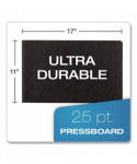 Pressboard durability combined with a smooth, distinctive finish. Tape reinforced hinge holds up to frequent referencing. Embossed cover panel for perfect placement of title. Durable pressboard. Tabloid size holds up to 3" of paper.