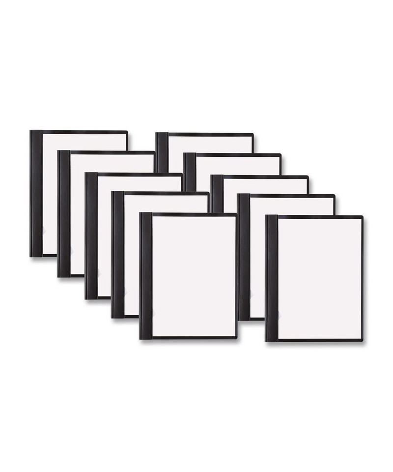 Show off your title page with a transparent front cover. Report cover with colored-vinyl back is durable and water-resistant. 0.5" capacity metal fastener secures up to 100 letter size sheets. Front cover is polypropylene, back cover is vinyl.