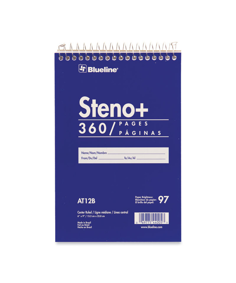 Take notes in a high-capacity manner. Fleixible steno pad with top wire bound to open completely and for an easier handwriting experience. 97 brightness white paper. Green ruling with brown center divide allows you to create side by side lists or take notes in a column format.