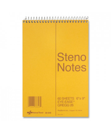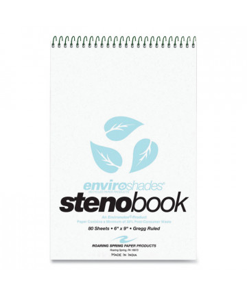 Brighten up your desk with colored paper steno books. Smooth, 15# writing paper is Gregg ruled with a center line, in grey ink. Paper is recycled. Covers are printed on a heavy-duty white board. Wire ends are coil-locked for snag-proof performance.