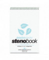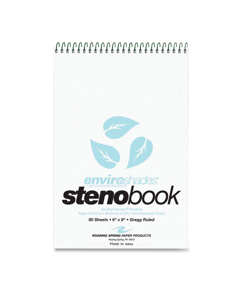 Brighten up your desk with colored paper steno books. Smooth 15# writing paper is gregg ruled with a center line, in grey ink and perforated. Paper is recycled and covers are printed on a heavy-duty white board. Wire ends are coil-locked for snag-proof performance. Each book is 6" x 9" and contains 80 sheets of writing paper.