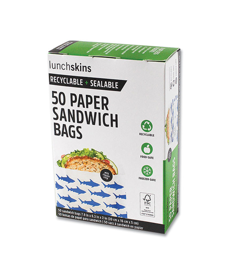 Finally, a disposable sandwich bag you can feel good about using. The box is designed to fit perfectly in your kitchen drawer. Remove self-adhesive closure strip to seal in freshness. The LunchSkins durable and naturally grease-resistant paper bag is recyclable plus sealable. Perfect for sandwiches, snacks, treats, and much more. Use at home or on the go. Winner of the 2017 Green Award.