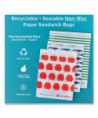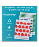 Finally, a disposable sandwich bag you can feel good about using. The box is designed to fit perfectly in your kitchen drawer. Remove self-adhesive closure strip to seal in freshness. This durable and naturally grease-resistant paper bag is recyclable plus sealable. Perfect for sandwiches, snacks, treats, and much more. Use at home or on the go. Winner of the 2017 Green Award.