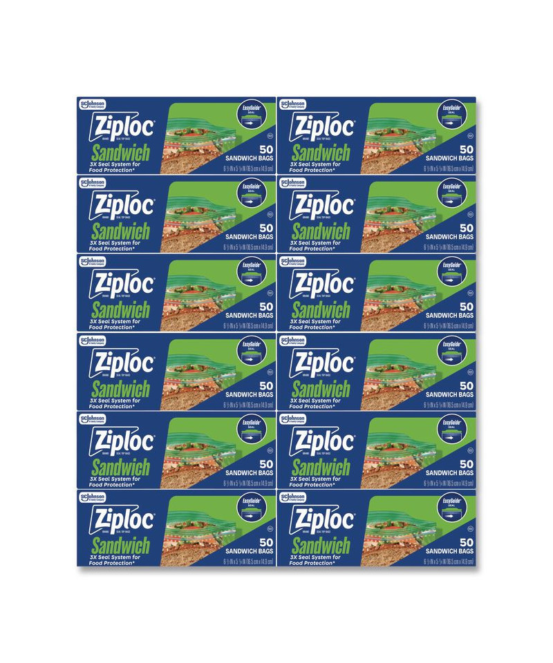 Resealable Sandwich Bags, 6.5" x 5.88", Clear, 50 Bags/Box, 12 Boxes/Carton