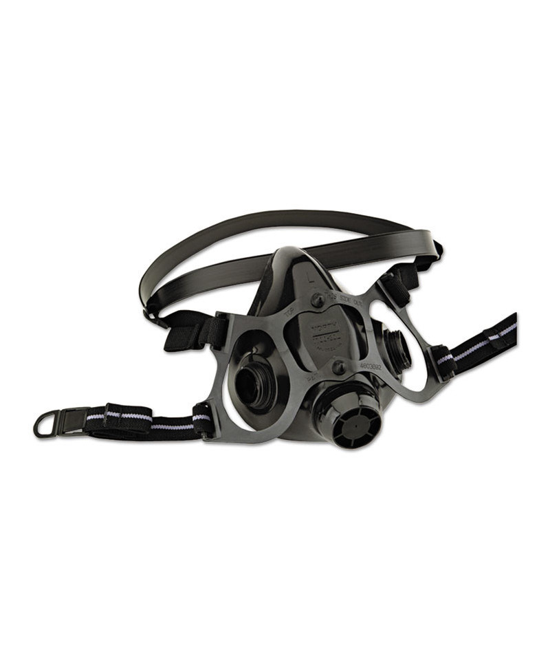 Comfortable half masks are suitable for multiple work environments and can be adapted to PAPR or Supplied Air systems. Because of low "dead air" space within the mask, less exhaled air is recycled. Strategic placement of the exhalation valve means that more breath leaves the mask swiftly, creating a cooler environment for the wearer. 7700 series half masks are 100% silicone, making them an ideal solution for workers with latex allergies. Dual-elastic headstraps are carefully engineered; bottom straps have more elasticity than top straps to create a secure, non-slip fit. Wide, contoured sealing area provides an improved fit for a variety of facial types. Handy 'parking' feature allows you to keep your mask at-the-ready.