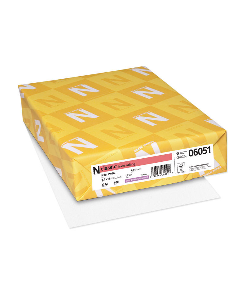 CLASSIC Linen Stationery, 97 Bright, 24 lb Bond Weight, 8.5 x 11, Solar White, 500/Ream