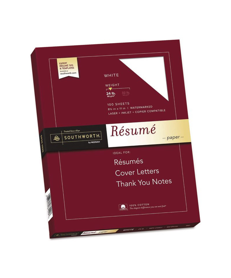 Nothing equals the rich texture of Southworth® 100% Cotton Resume Paper. Its distinctive crispness provides a feeling of substance that makes both an immediate and a lasting impression. Perfect for resumes, cover letters, thank you notes and more. It's your story, how you tell that story matters. Trying to land the job is a full time job, from tweaking your resume to networking, career fairs to preparing for interviews. Through it all, you need to develop and tell the story of you. How you share that story matters. The paper you choose to share it on is important. From the first moment to enduring memory, the cotton in Southworth® Resume Paper adds a touch of class. Cotton paper makes first impressions more impressive with a distinct crispness and an unmistakable feel. Someone picking up your resume will know, before they even read a single word, that there's something special to it. Be prepared to share your story at your next interview. Present your resume on Southworth® and rise to the top of the stack.