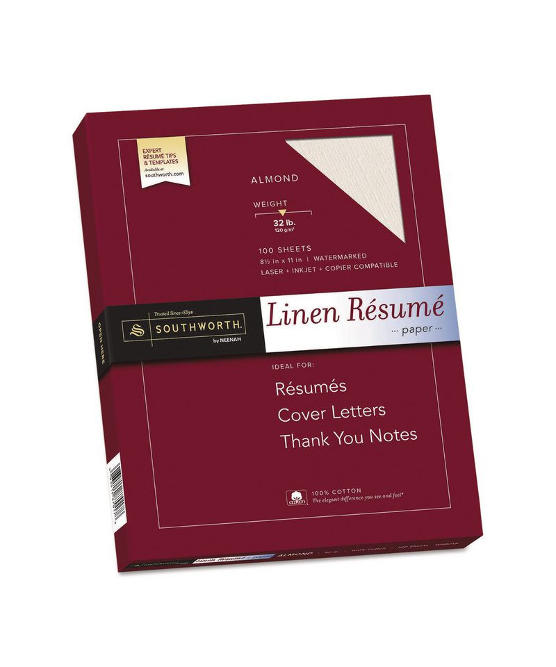 Elegant texture of linen gets your resume noticed. Water-marked and date-coded. Acid- and lignin-free for archival quality. Laser, inkjet and copier compatible. Endorsed by the National Resume Writers Association.