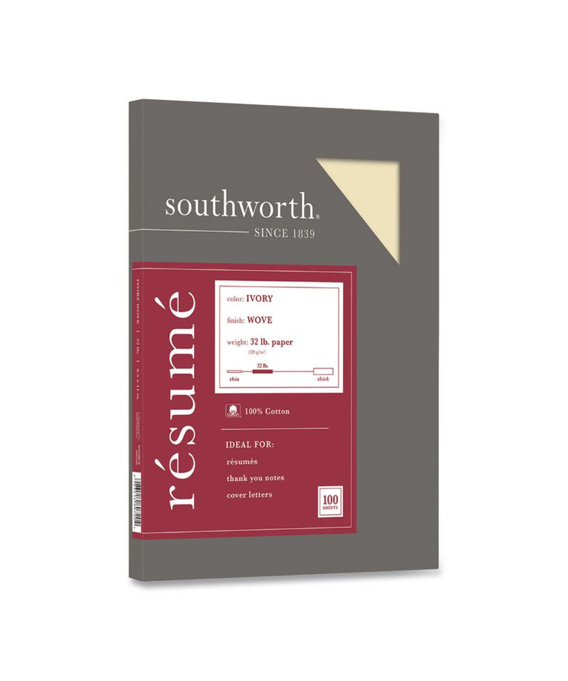 Nothing equals the rich texture of Southworth® 100% Cotton Resume Paper. Its distinctive crispness provides a feeling of substance that makes both an immediate and a lasting impression. Perfect for resumes, cover letters, thank you notes and more. It's your story, how you tell that story matters. Trying to land the job is a full time job, from tweaking your resume to networking, career fairs to preparing for interviews. Through it all, you need to develop and tell the story of you. How you share that story matters. The paper you choose to share it on is important. From the first moment to enduring memory, the cotton in Southworth® Resume Paper adds a touch of class. Cotton paper makes first impressions more impressive with a distinct crispness and an unmistakable feel. Someone picking up your resume will know, before they even read a single word, that there's something special to it. Be prepared to share your story at your next interview. Present your resume on Southworth® and rise to the top of the stack.