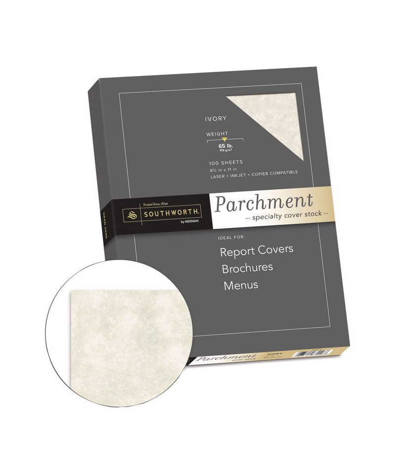 Create professional documents. The parchment finish produces a sophisticated appearance, while the 24-pound material delivers a high-quality feel. Acid-free and lignin-free, so ink won't life off printed pages, allowing for documents to be archived.