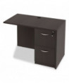 Universal application office furniture piece that can be used as either as a return or bridge to create "U" or "L" shaped workstations. Durable, 1'' thick worksurface and side panels are water, scratch and dent-resistant. Full-height modesty panel. Flexible design that adapts to right or left-handed configurations. Fitted with one wire management grommet to keep cords tucked away for increased organization and safety. Protective 3 mm edge banding.
