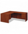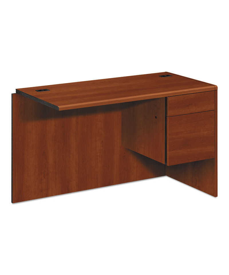 A modular management solution that combines stylish profiles and elegant accents with top-grade fit and finish. Abrasion- and stain-resistant laminate with elegant hardwood trim. Grommets on worksurface for cable management. Full-extension file and 3/4-extension box drawers ride on steel ball bearing suspensions. Drawers lock to secure contents. “One Key” core removable locks make re-keying quick and easy. File drawer has rails for hanging file folders. Adjustable leveling glides on base. Desk and Return sold and shipped separately—ORDER BOTH.