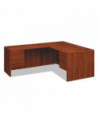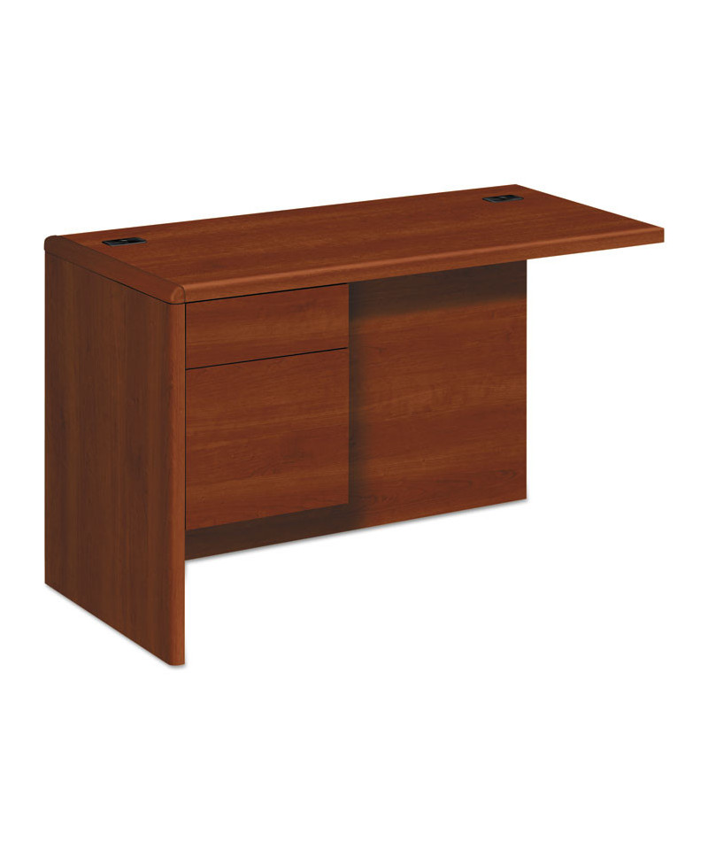 A modular management solution that combines stylish profiles and elegant accents with top-grade fit and finish. Abrasion- and stain-resistant high-pressure laminate with elegant hardwood trim. Grommets on worksurface for cable management. Full-extension file and 3/4-extension box drawers ride on steel ball bearing suspensions. Drawers lock to secure contents. “One Key” core removable locks make re-keying quick and easy. File drawer has rails for hanging file folders. Adjustable leveling glides on base. Desk and Return sold and shipped separately—ORDER BOTH.
