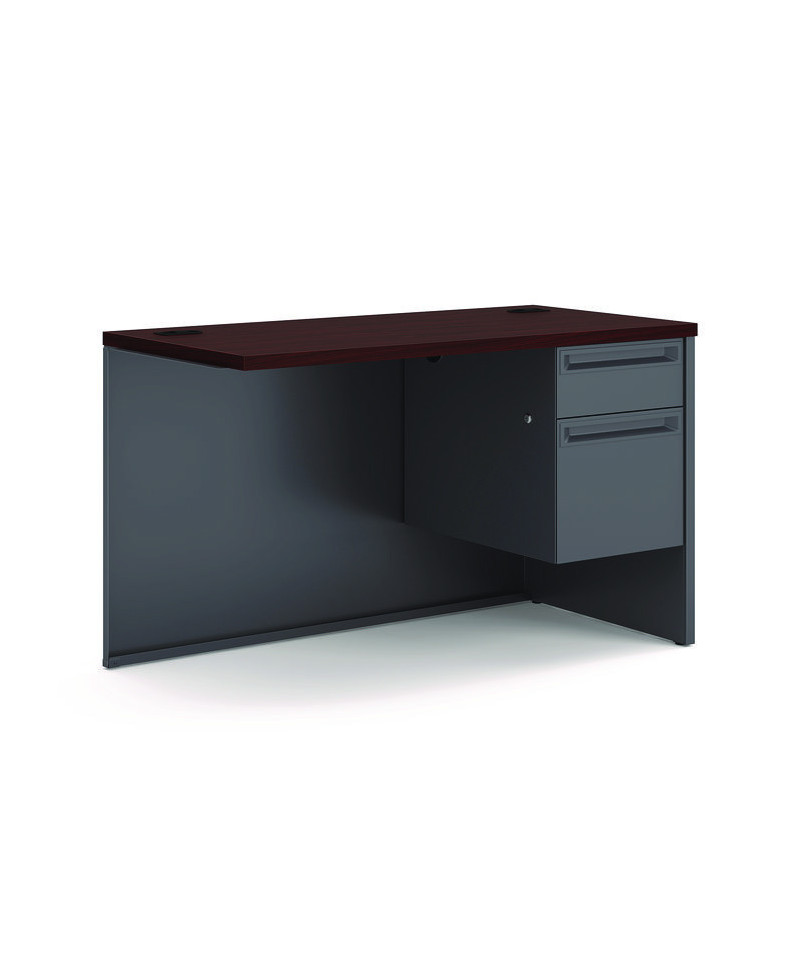 High-pressure laminate top is moisture-, scratch- and stain-resistant. Drawers operate on steel ball bearing slides. Tru-fit mitered drawers with a removable core lock. Cord management grommets and modesty panel. Not freestanding. Attach to single pedestal desk or L-workstation desk to create an L-workstation.