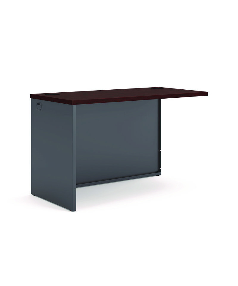 High-pressure laminate top is moisture-, scratch- and stain-resistant. Two work surface grommets for convenient cord management. Full-height modesty panel for privacy. Not freestanding. Use with desk shell to create an L-workstation or use two return shells with corner unit to create a corner workstation.