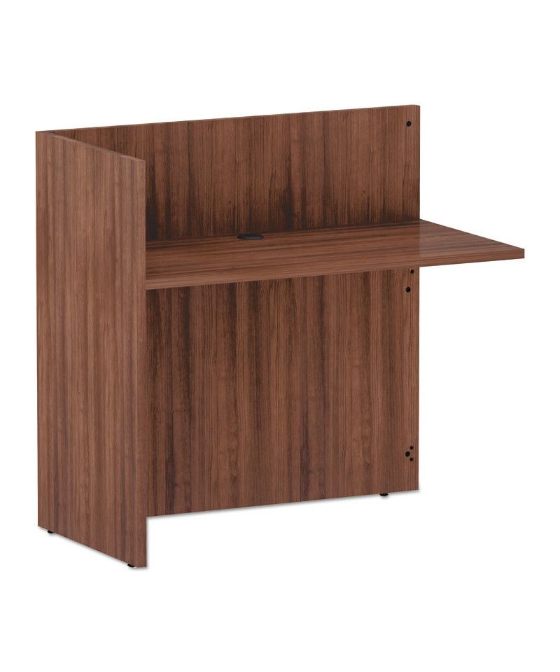 Combine with Reception Desk to create an L-shaped workstation for transacting business or welcoming guests. Commercial-grade laminate worksurface and side panels are water-, scratch- and dent-resistant. Adapts to right- or left-handed configurations. High-sided panels for privacy. Handy grommet for cable and wire management. Protective 3mm edge banding. Leveling glides help compensate for uneven floors.