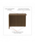 Universal application office furniture piece that can be used as either as a return or bridge to create "U" or "L" shaped workstations. Durable, 1'' thick worksurface and side panels are water, scratch and dent-resistant. Full-height modesty panel. Flexible design that adapts to right or left-handed configurations. Fitted with one wire management grommet to keep cords tucked away for increased organization and safety. Protective 3 mm edge banding.