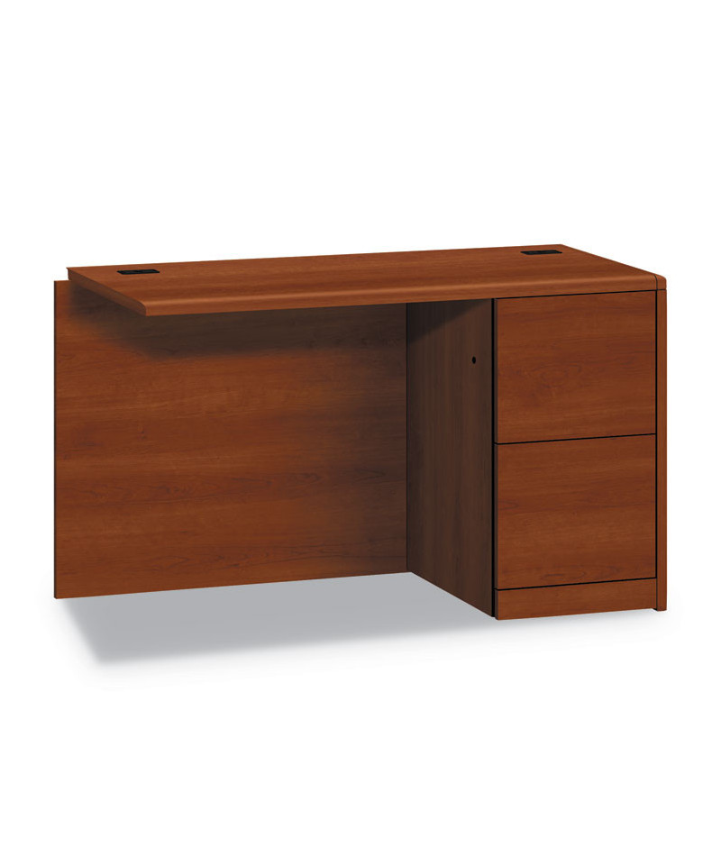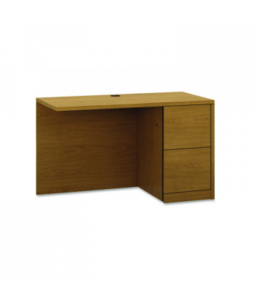 Polish up your workspace with this right return. Simply combine it with a left desk, left credenza or peninsula of your choice to create an L-workstation. Exclusive reinforced pedestal construction makes this HON® desk withstand daily wear and tear like no other. All drawers lock using the same key; lock core can be changed as security needs require. Drawers glide on steel ball-bearings for years of smooth, reliable performance and open fully to give easy access to all contents. File drawers have built-in hangrails to accept hanging file folders. Concealed openings in the pedestals allow cords to be routed inside the unit. Soft, waterfall-shaped edges provide a comfortable typing surface. Fully assembled and ready to use.